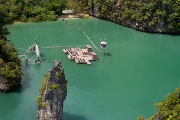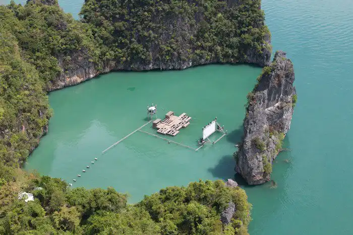 Этот кинотеатр находится на острове Yao Noi, в Южном Тайланде и расположен он прямо на воде, укрытый двумя огромными скалами в тихом и очень красивом заливе ...
