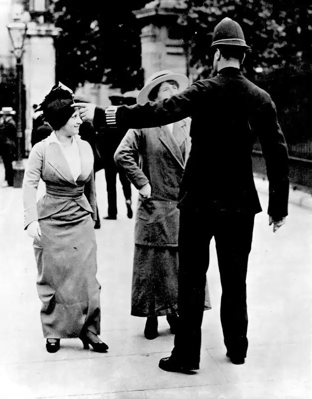 39. Две суффражистки беседуют с полицейским. Лондон, 1912 год.