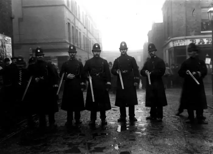 26. Полиция вооружена огнестрельным оружием по приказу Черчилля, во время осады Сидней-Стрит . Январь 1911 год.