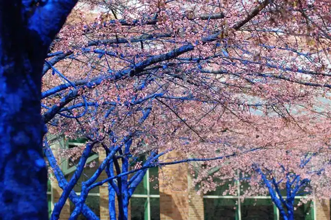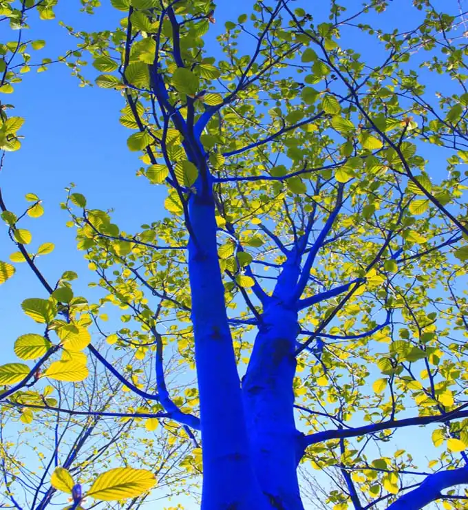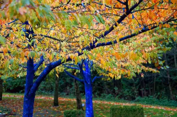 Австралийский инсталятор Константин Димопулос (Konstantin Dimopoulos) красит стволы и ветви деревьев в ярко синий цвет.