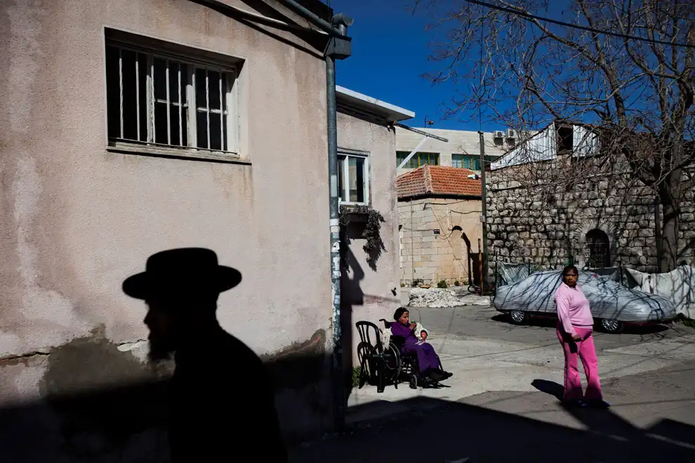 Ультраортодоксальный еврей проходит мимо женщины, которая сидит возле своего дома в районе Меа Шеарим в Иерусалиме.