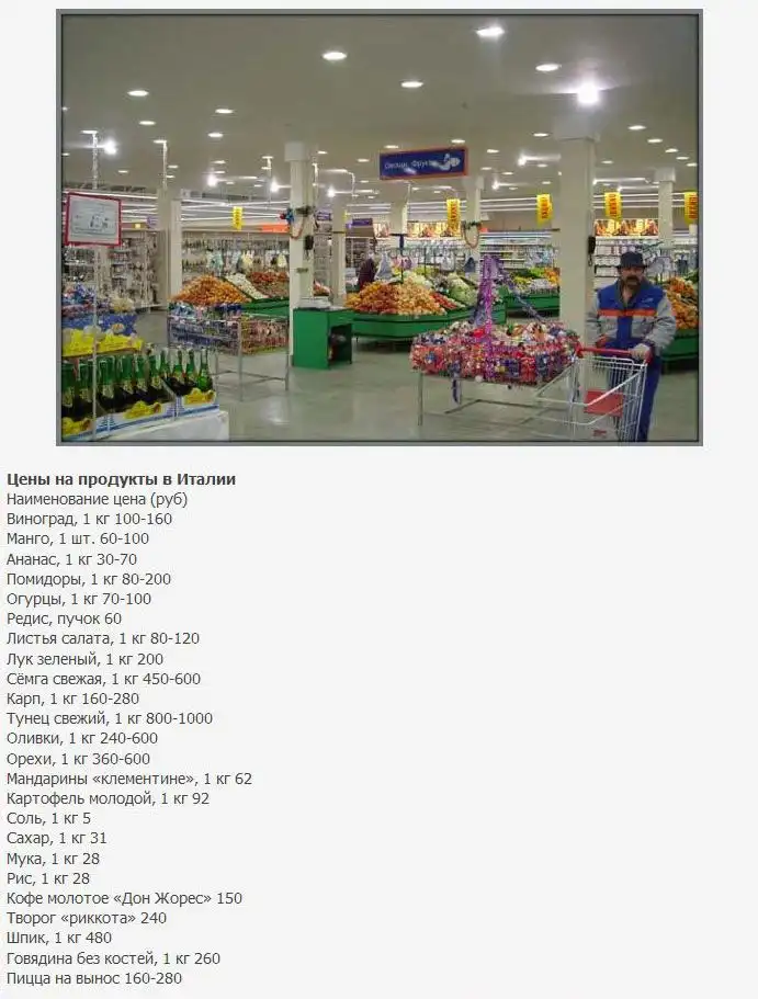 Я вам хочу рассказать, сколько стоят продукты питания "у них",