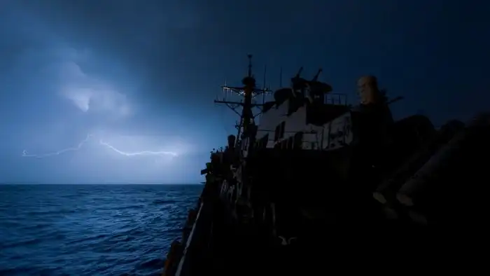 Лодки, огромные корабли, выстрелы, учения и боевые задачи.