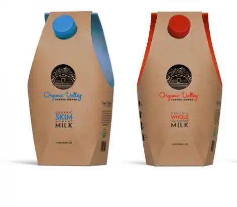 Картонные бутылки для молока GreenBottle объемом 2 литра. Внешняя сторона “бутылки” сделана из вторсырья и разлагается сама, а внутренняя из тщательно обработанной утолщенной бумаги, а потому безопасна для потребителей и может быть сдана в переработку.