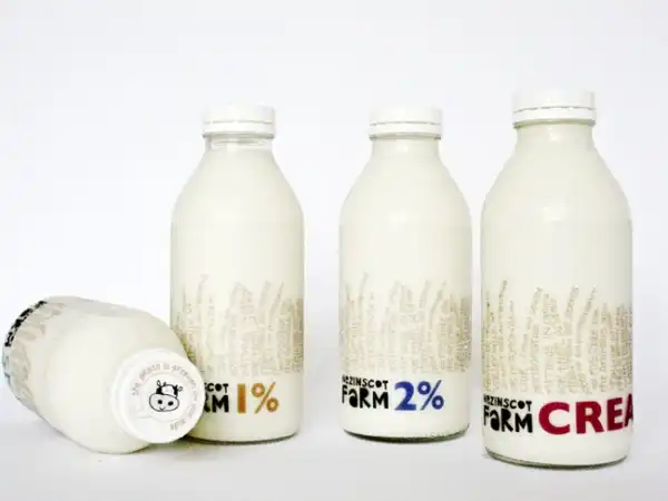 Молочные бутылки без этикеток - вся нужная информация написана прямо на стекле.