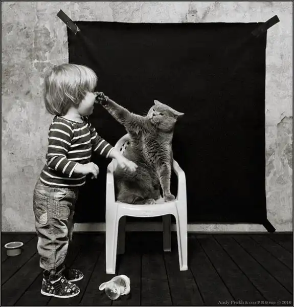 Классно вообще.. Вот бы коты так в жизни с детьми ладели.. А то у меня кот пол дня недоумивает.. Куда я еду и почему за хвост.. А потом пол дня от племяшки прячиться...)))