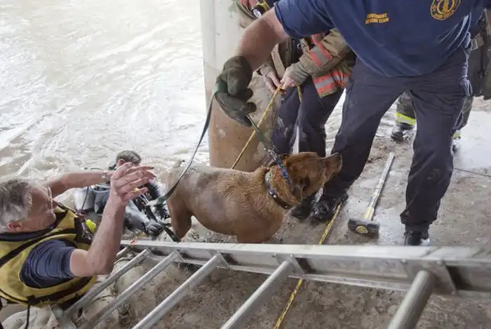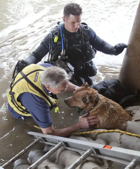 Во время наводнения в городе Вичита, Канзас, один человек заметил ноздри пса,