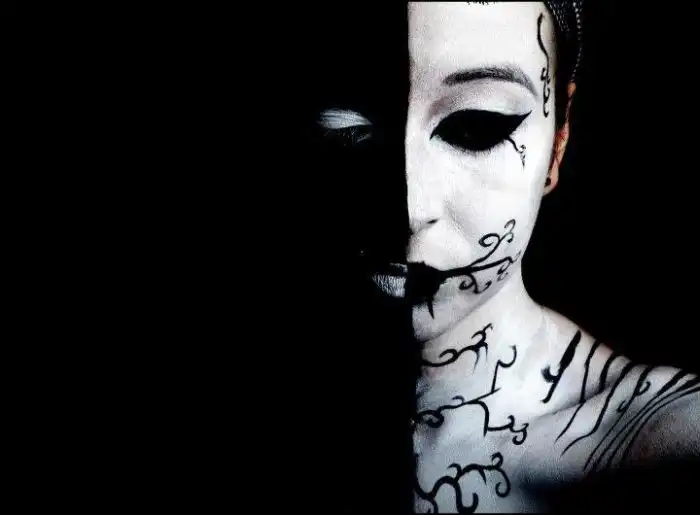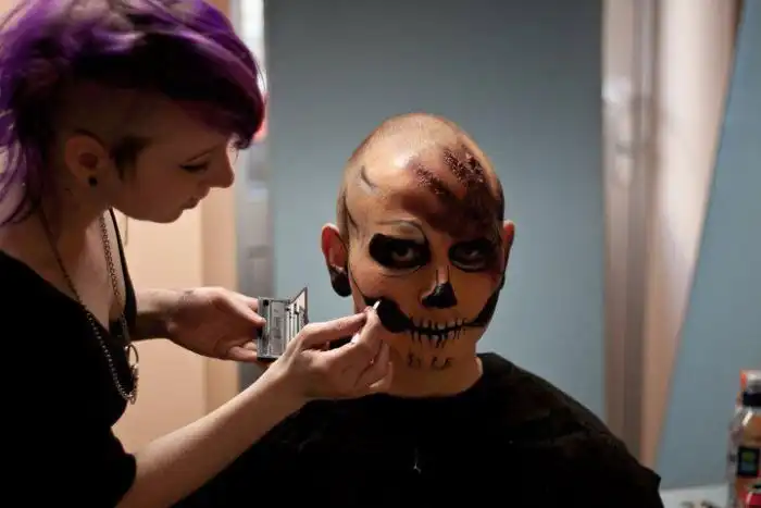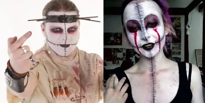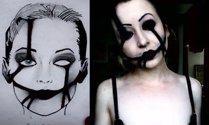 Макияж может быть не только красивым, но и пугающим.Такой грим используют практически в каждом фильме ужасов.