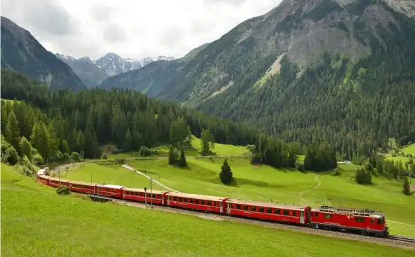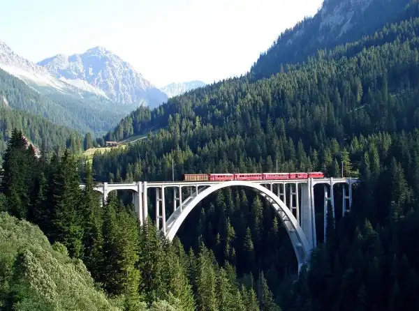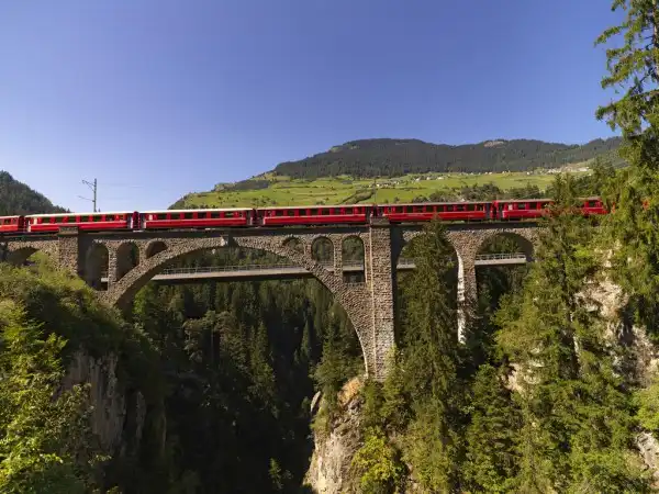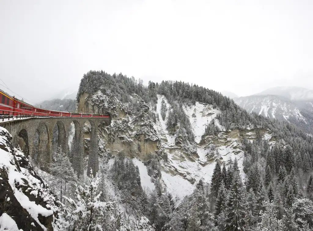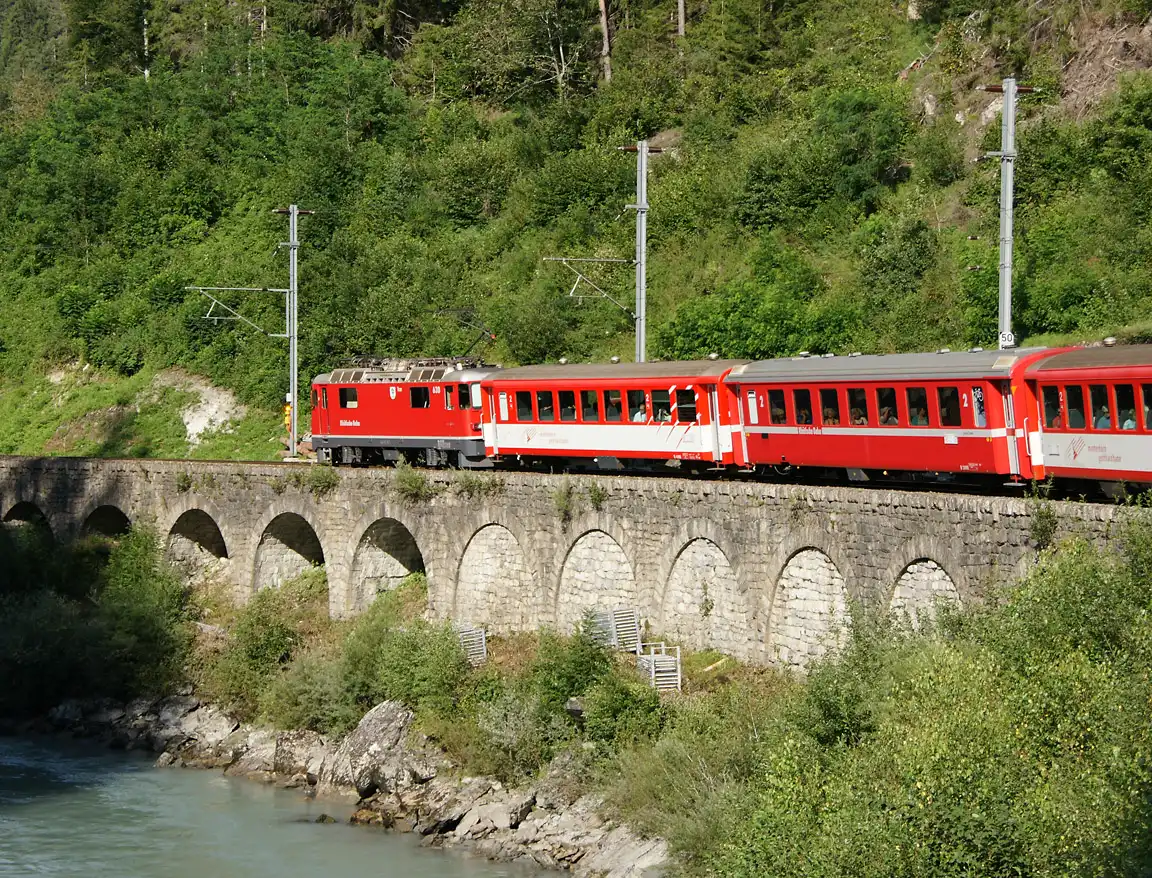 Ретийская железная дорога – одна из визитных карточек Швейцарии. Мимо нависающих скалистых утесов, глубоких ущелий и речных долин, перевалов, мостов-виадуков, через замысловатые тоннели, все выше и выше, к подступающим прямо к полотну дороги горам, снегу и горнолыжным курортам несется ярко-красный экспресс, давно ставший символом страны. Путешествие по этой живописной дороге – настоящая экскурсия по одному из самых труднодоступных уголков Альп.