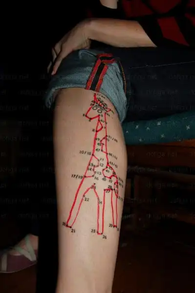 на ноге жираф,на жопе судоку....в башке туманность андромеды.