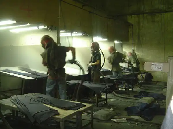 Мода на «поношенные» джинсы уже унесла сотни жизней и привела к инвалидности тысячи людей в странах, где производится большая часть этого сегмента рынка. Внешний вид «потертости» достигается за счет применения опасной пескоструйной обработки, которая состоит в том, что струя песка с водой под давлением направляется на ткань.