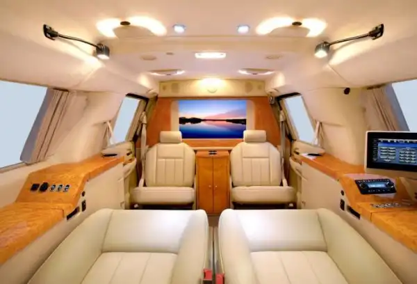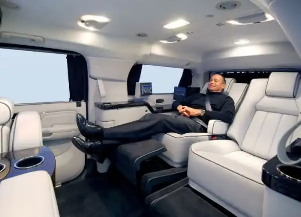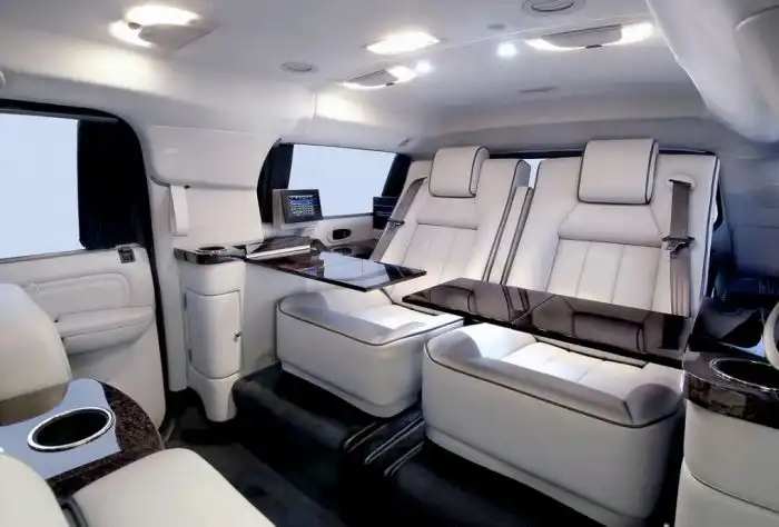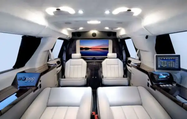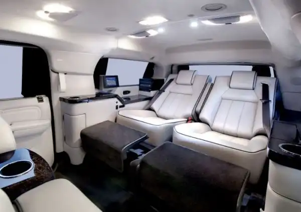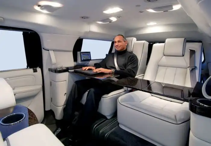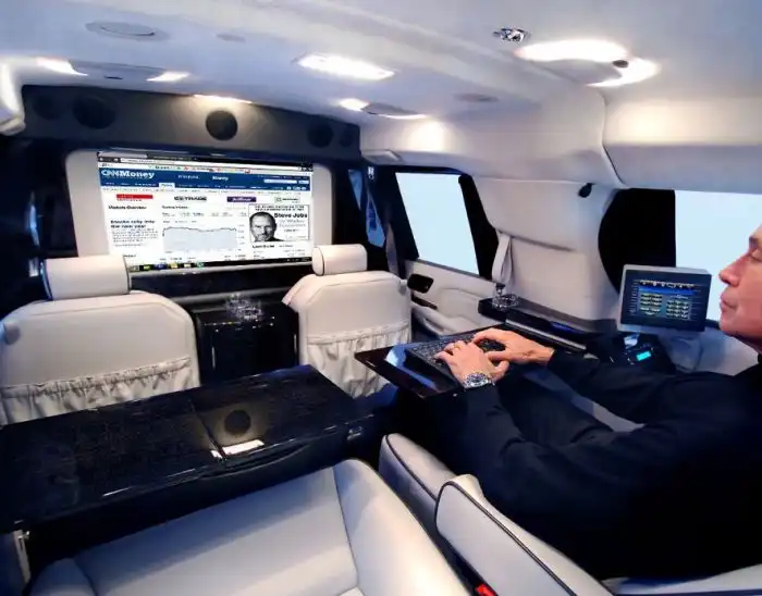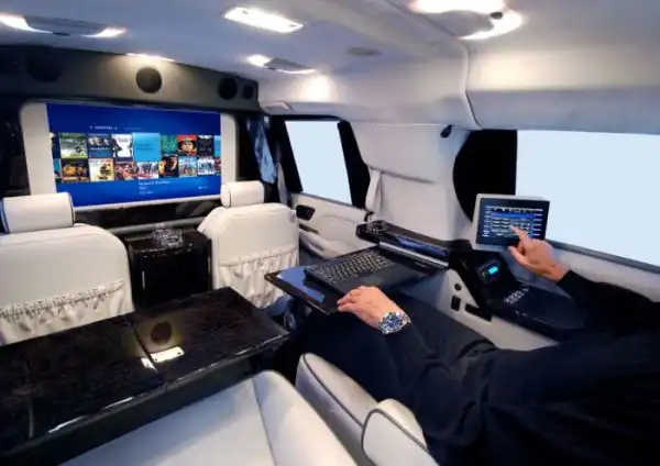 И без того броский Cadillac Escalade, превратили в мобильный офис и место для проведения деловых конференций.Внутри всё выполнено по высшему классу, и сделано все для комфорта пассажиров.