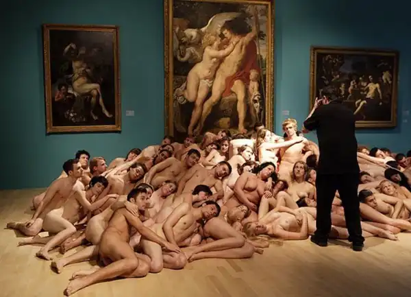 Американский фотохудожник Спенсер Туник (Spencer Tunick) родился 1967 году. С 1992 года Спенсер организует флешмобы обнаженных людей для своих фото-инсталляций. Вначале своей карьеры Спенсер фотографировал просто обнаженных моделей; сначала одну, затем двух, и так число позирующих постепенно стало увеличивать. Рекордом является флешмоб в Мексике, где количество добровольцев составило 18000 человек.
