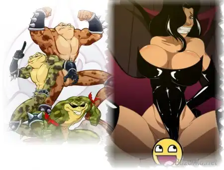 Да, Battletoads была сложна для прохождения. Хотя, самое сложное было пронестись по уровню на какой-то хрене, не врезавшись в столбы. Не суть! Сюжет Battletoads написал Гай Миллер и опубликовал в комиксе Nintendo Power. Сюжет довольно прост: две антропоморфные жабы Зитц (Zitz) и Рэш (Rash) обязаны спасти: жабу Пимпла (Pimple) и белокурую сучку по имени Принцесса Анжелика (Princess Angelique). Главный враг в игре Battletoads - Королева Тьмы (Dark Queen).