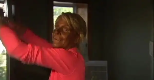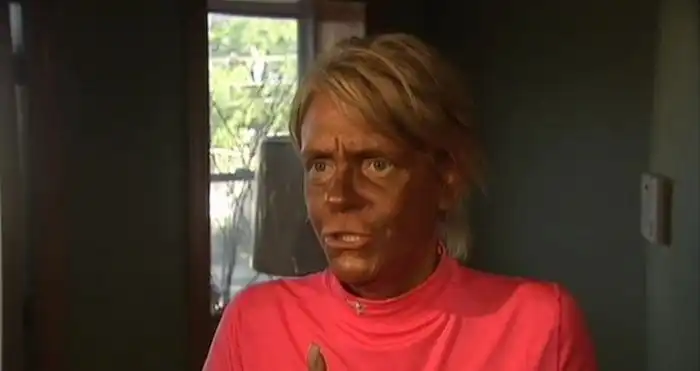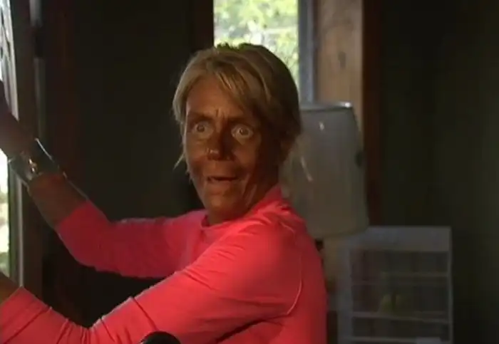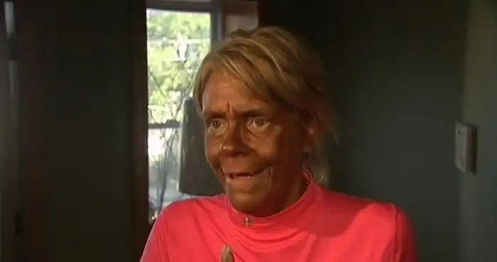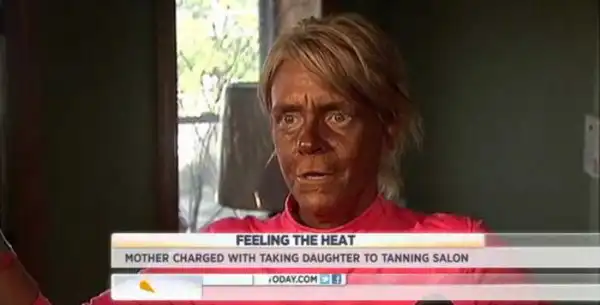 44-летняя женщина обвиняется в том, что повела свою 5-летнюю дочь в солярий, где она получила ожог.Несмотря на то, что женщина отрицает свою причастность к этому, полиция ей не верит.Ее внешний вид говорит сам за себя.