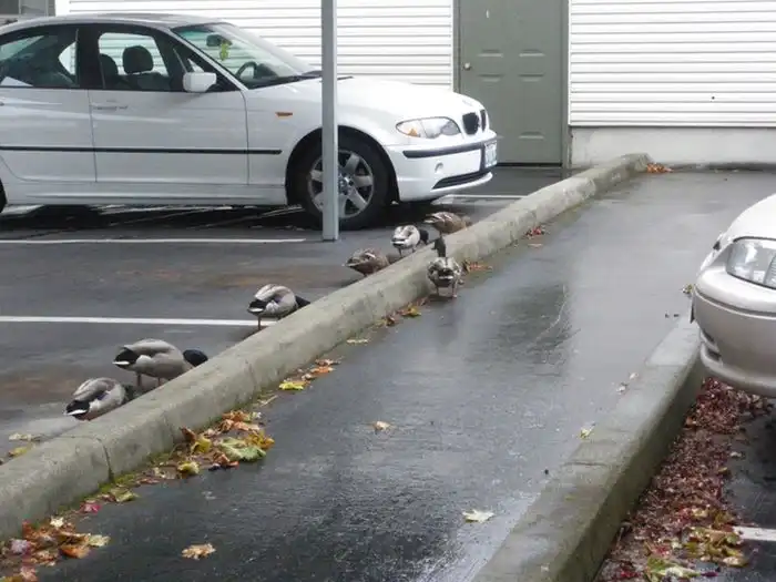 Скажите мне, что все эти утки забыли на автомобильной парковке? Может быть, они не могут найти то место, где оставили свой автомобиль? :)