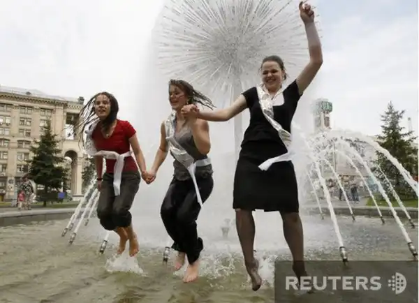 На Площади Независимости в Киеве ученики распрощались со школой на последнем звонке.