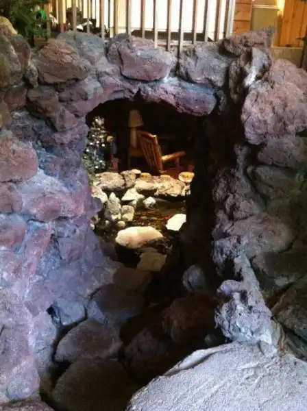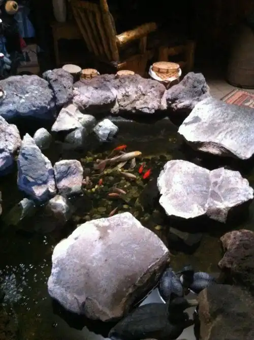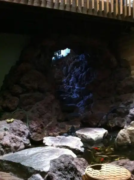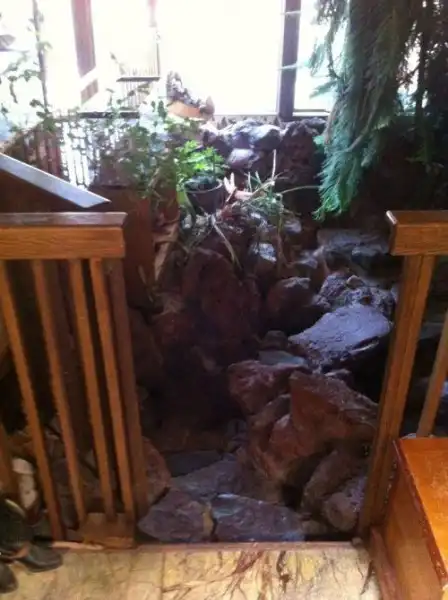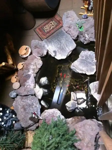 Обычная квартира превратилась в берег пруда с рыбками, камнями, выложенными лестницами и соответствующей атмосферой.Наверное, здорово успокаивает после тяжелого рабочего дня!