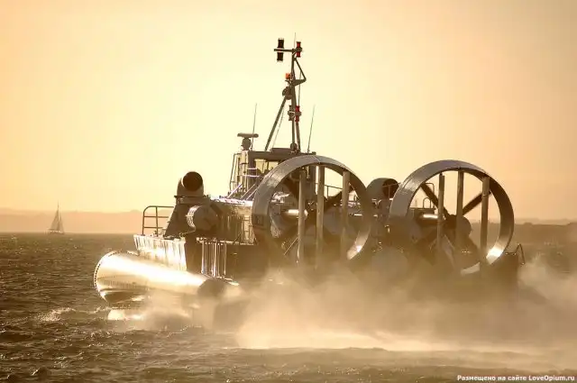 Суда на воздушной подушке — корабли, которые могут передвигаться с большой скоростью и над водой, и над сушей, буквально паря на небольшом расстоянии над ними. Все дело в слое сжатого воздуха под днищем судна, который приподнимает его над поверхностью воды или земли.