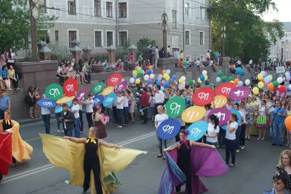 28 мая Томский государственный университет отметил свой 134-й день рождения, и по этому поводу студенты и сотрудники первого в Сибири вуза 1 июня прошли в традиционном шествии.