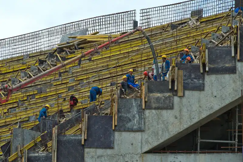 Всего на строительстве олимпийских объектов занято около 50 000 человек. Работа идет в три смены, 24 часа в сутки, без выходных.