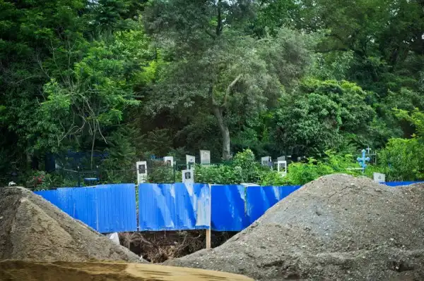 По дороге от Олимпийского стадиона проезжаем мимо самого необычного объекта Олимпийского парка — кладбища староверов. Его обнесут высокой стеной, которую уже начали возводить.