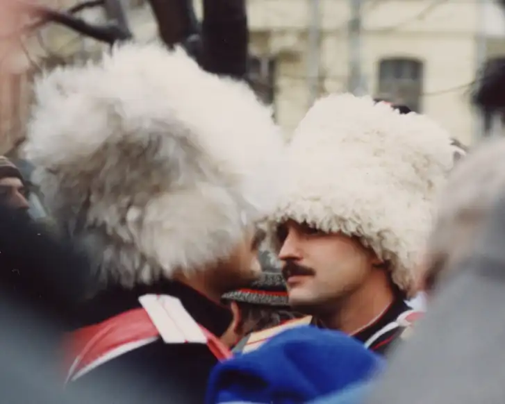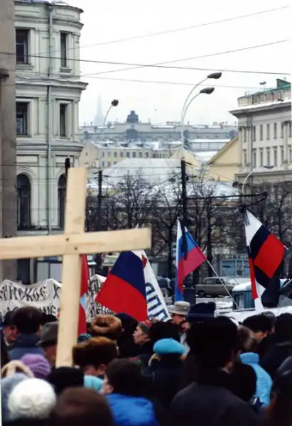 А казачки то ряженые на фото...А вот лозунги не поменялись с тех времён. Только букв больше и матерщина скуднее на митингах.