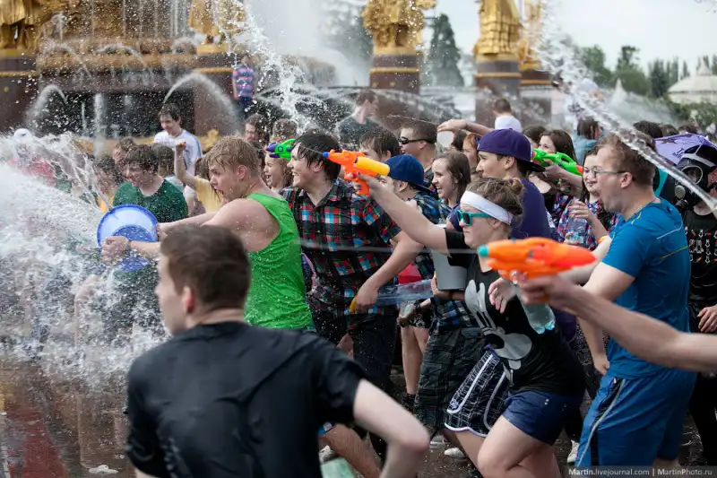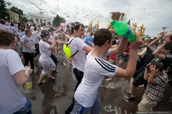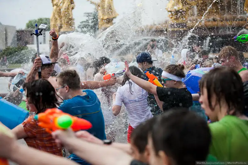 В прошедшую субботу состоялась первая в этом сезоне водная битва на ВДНХ. Правда на улице было не особо жарко, но людей пришло довольно много!