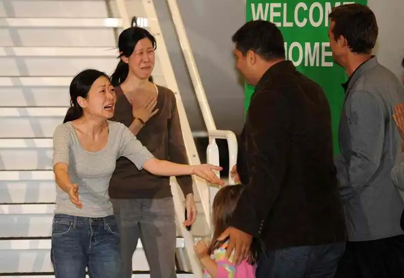 Журналисты Юна Ли и Лора Линг, которые были арестованы в Северной Корее и приговорены к каторжным работам на 12 лет, воссоединены с их семьями в Калифорнии. После успешного дипломатического вмешательства США.