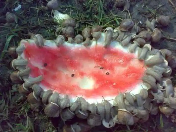 На картинке пожирание(25000 зубов у каждой, причем все на языке) десерта после обеда на улитковой ферме.