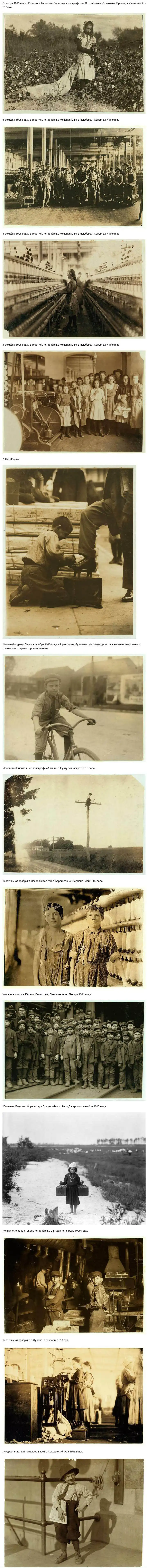 Согласно переписи населения 1900 года, в Соединенных Штатах насчитывалось 1,7 млн. несовершеннолетних, вынужденных трудиться наравне со взрослыми. Уже к тому времени детский труд во многих штатах был под запретом, но едва ли где-то соблюдался. Лишь в 1908 году запрет распространился на всю страну, но и после этого понадобились еще годы, пока с проблемой не начали бороться по-настоящему. С 1910 по 1918 год фотограф Льюис Хайн документировал детский труд в США. По заданию организации National Child Labor Comittee (NCLC) он объездил всю страну, правдами и неправдами проникал на фабрики и шахты, немало рисковал. Во многом именно его снимки, а также лоббистская работа NCLC изменили в США взгляд на проблему.