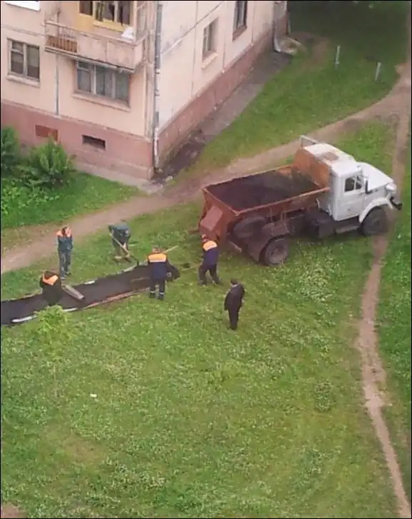 Пока батька находится с визитом в Латинской Америке, дорожные службы осваивают новую технологию по укладке асфальта.