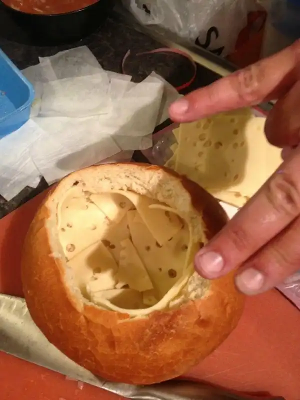 7. Кладем ломтики швейцарского сыра и запаковываем.