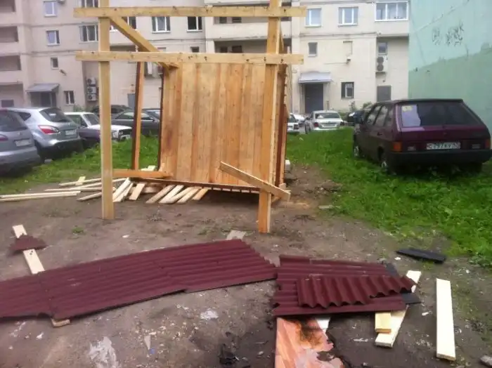 Смотрим далее, во что превратили эту деревянную беседку недоброжелатели.