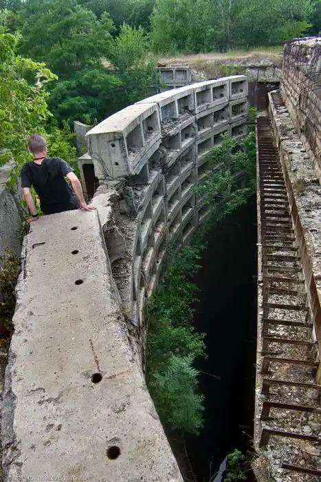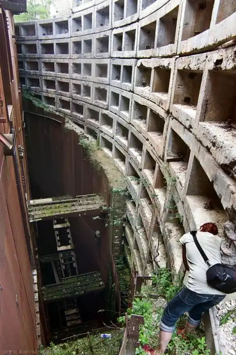 Конструкция этого бункера состоит уз двух цилиндров с диаметром 36 метров,