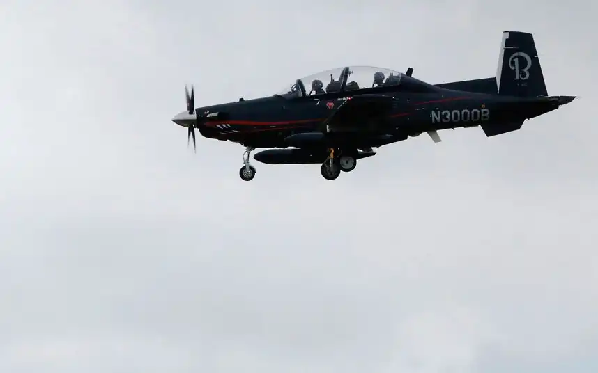 12. Самолёт Raytheon T6B заходит на посадку. (Picture: REUTERS/Luke MacGregor)