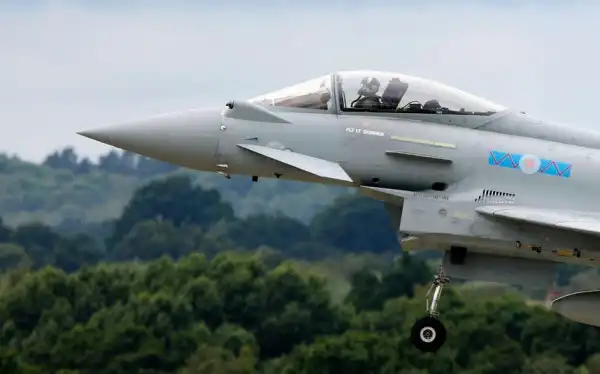 6. Взлёт многоцелевого истребителя Еврофайтер Тайфун. (Picture: REUTERS/Luke MacGregor)