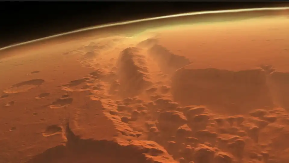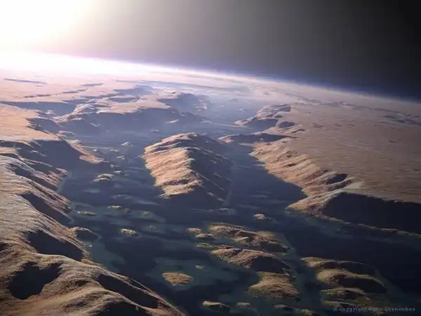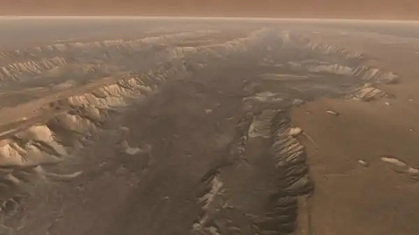 Самый большой каньон в солнечной системе широкой полосой пересекает диск Марса. Эта огромная долина, названная Долиной Маринера, имеет длину более 3000 километров, ее ширина достигает 600 километров, а глубина - 8 километров.