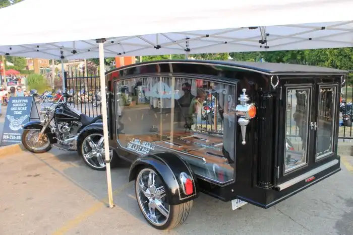 Предлагаю вам посмотреть на первый в мире катафалк для настоящих байкеров,которые погибли на дороге, но друзья решили почтить их память в байкерском стиле.