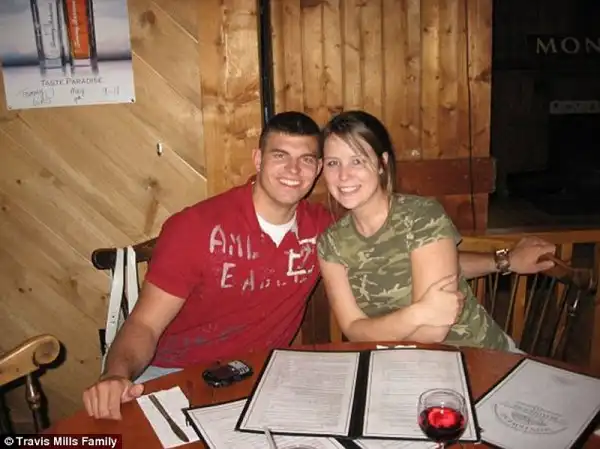 9. Люди пытаются всячески подержать Тревиса. И в его родном городе повсюду расклеены небольшие листовки с пожеланиями выздоровления Тревису Миллсу. На фото: Тревис и его жена Келси до несчастного случая.
