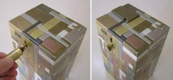 Сконструированная мичиганским машинистом Гаре Макстоном (GarE Maxton), головоломка представляет собой металлический кирпич 200х130х100 мм с весом в 40 фунтов (18 с лишним килограмм). Знакомство с этим необычным предметом начинается с ключевого элемента - металлического цилиндра с магнитом внутри.