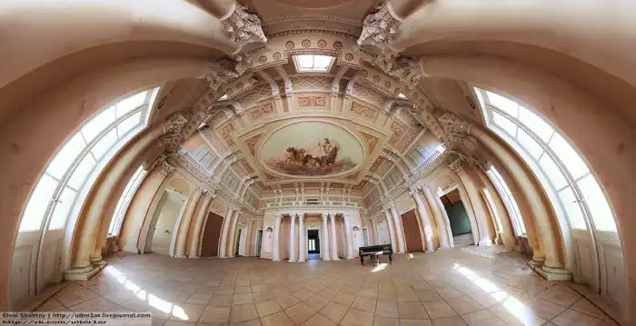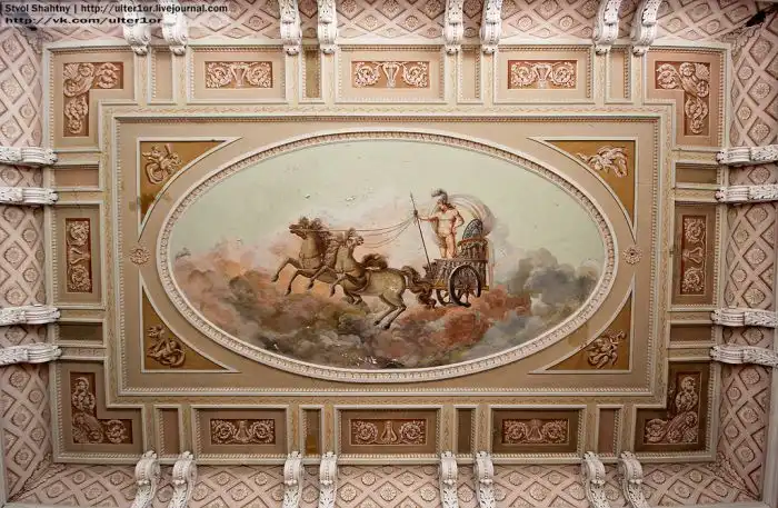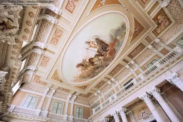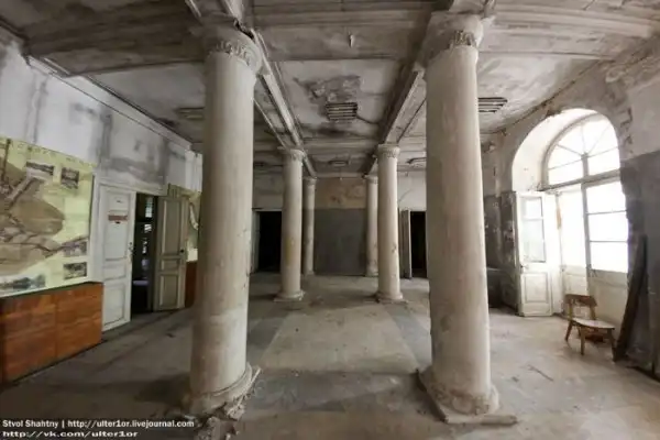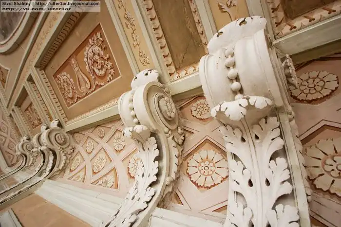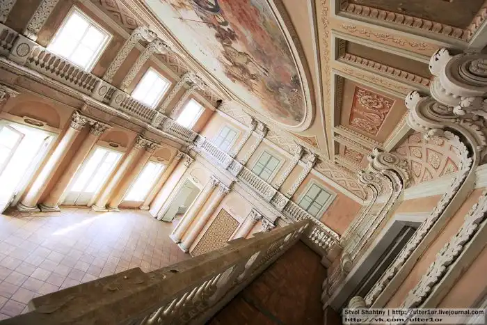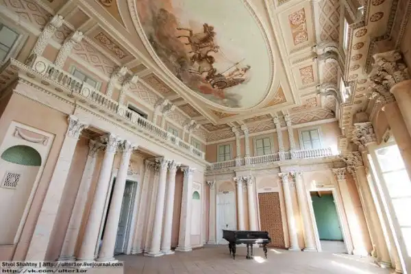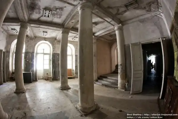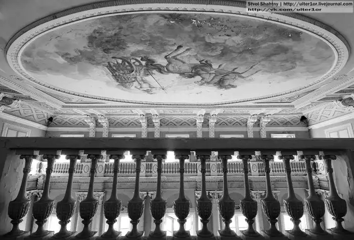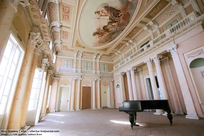Фотоотчет о прогулке по удивительной усадьбе, которая сейчас находится в аварийной ситуации.Старинные своды колонн, фреска на потолке - и это все было заброшено.
