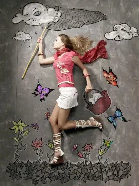 В этой креативной серии фотографий сочетается рисунок и фотография. Модели позируют на рисунках на асфальте. Удивительный проект создал художник Нитин Рао Камблекар – бывший арт-директор рекламного агентства, который сейчас работает фрилансером для корпоративных клиентов, агентств и издателей. Фотографии были сделаны Абхитабом Каме, а весь проект был подготовлен для Алена Солли – торговца модной одеждой в Индии. Кажется, получилось отлично!