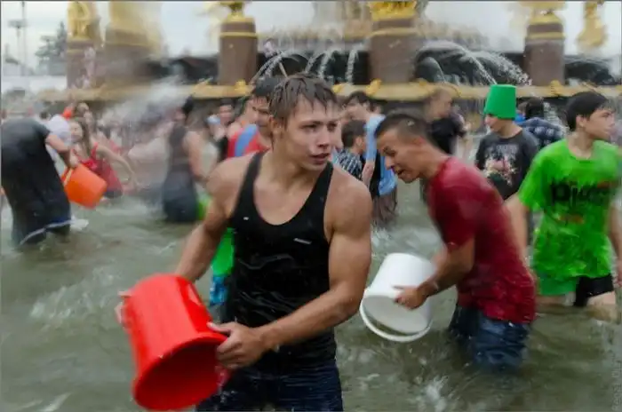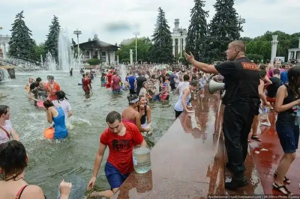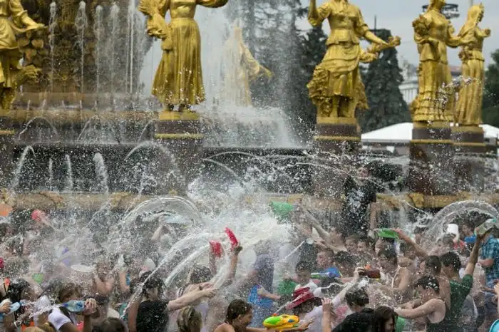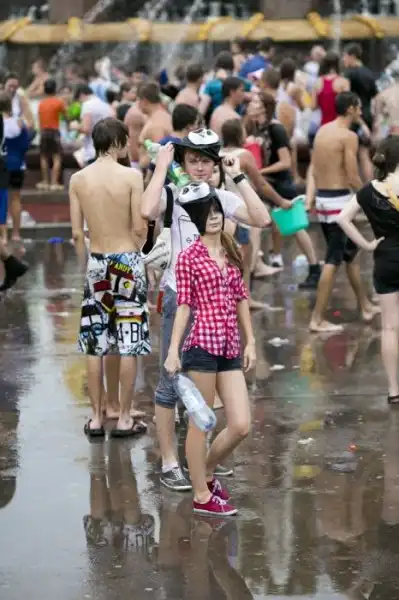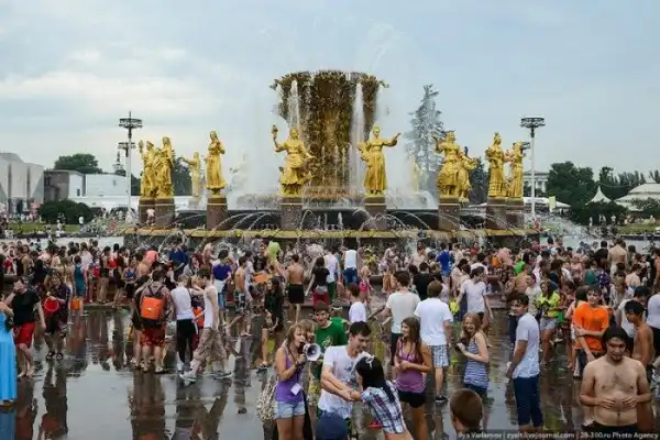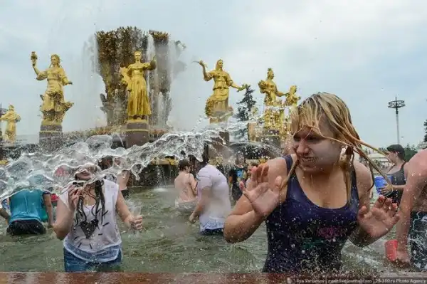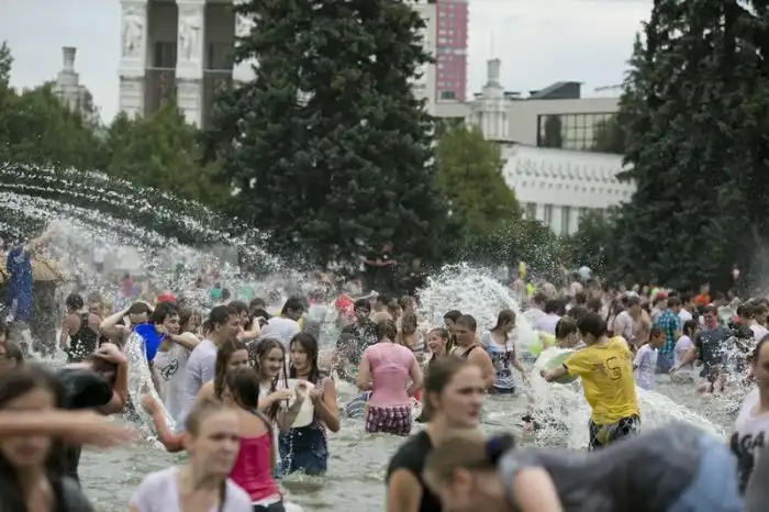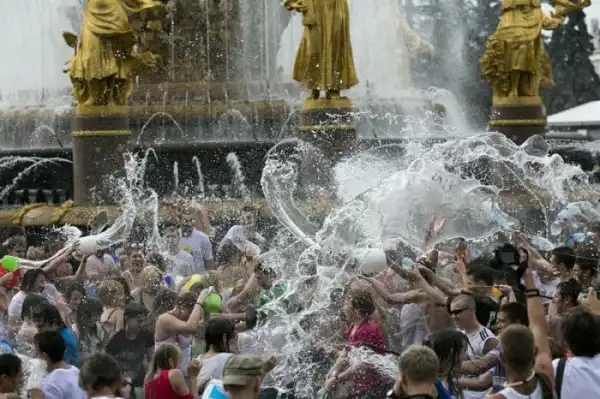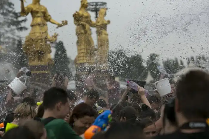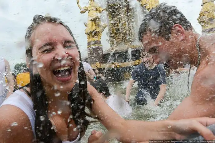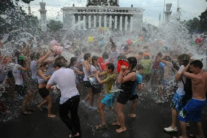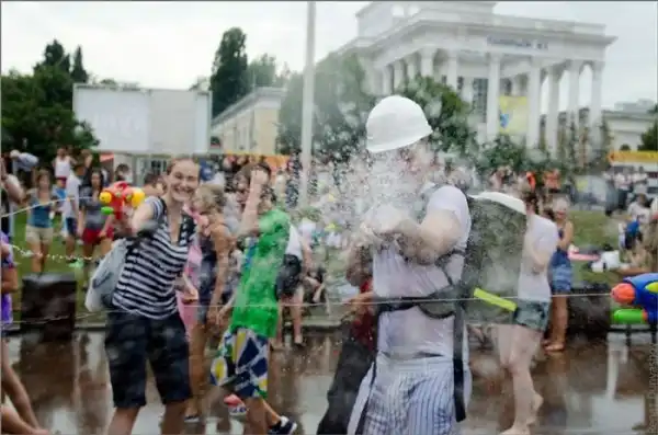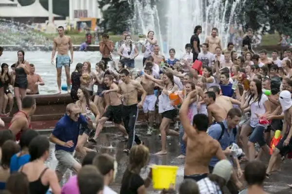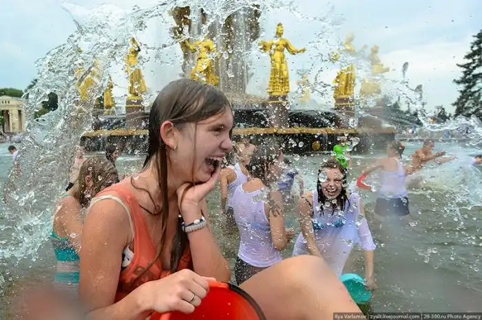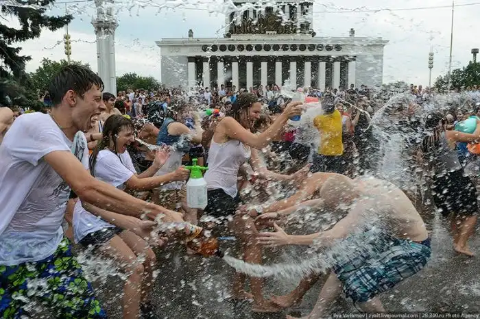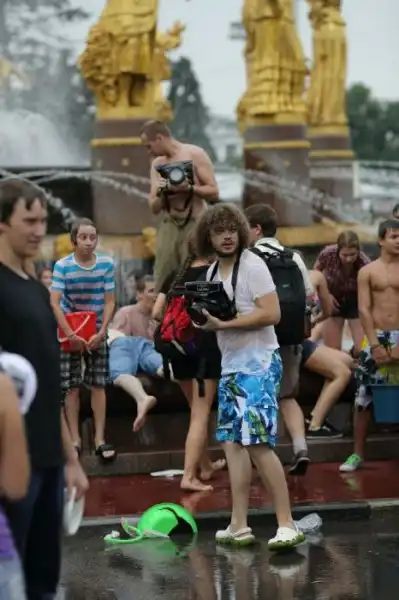 Чем еще заняться молодежи в душной и невыносимо жаркой столице? ;)Конечно же устроить традиционную водную битву на ВДНХ.