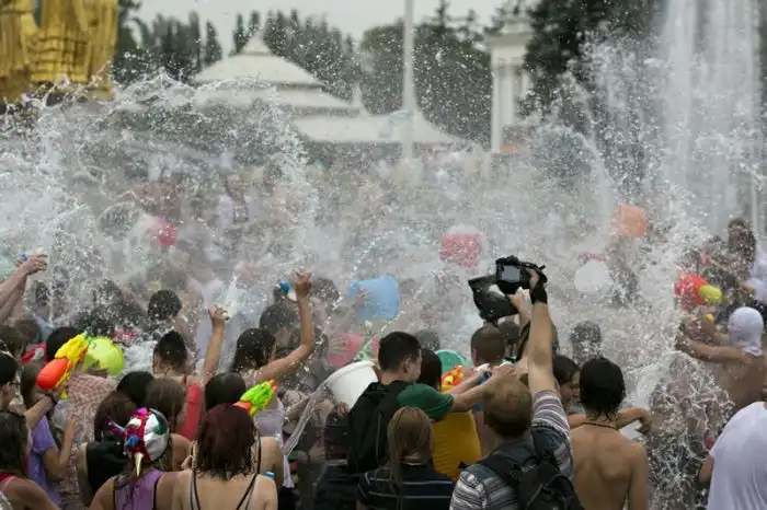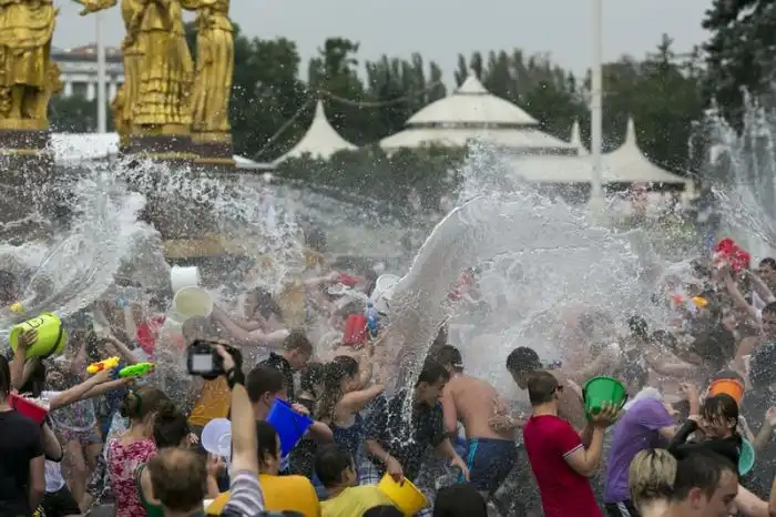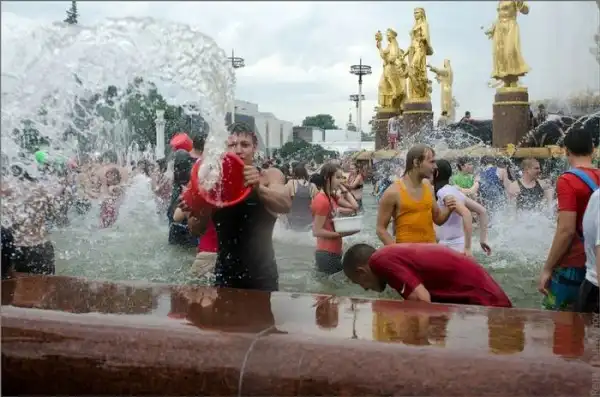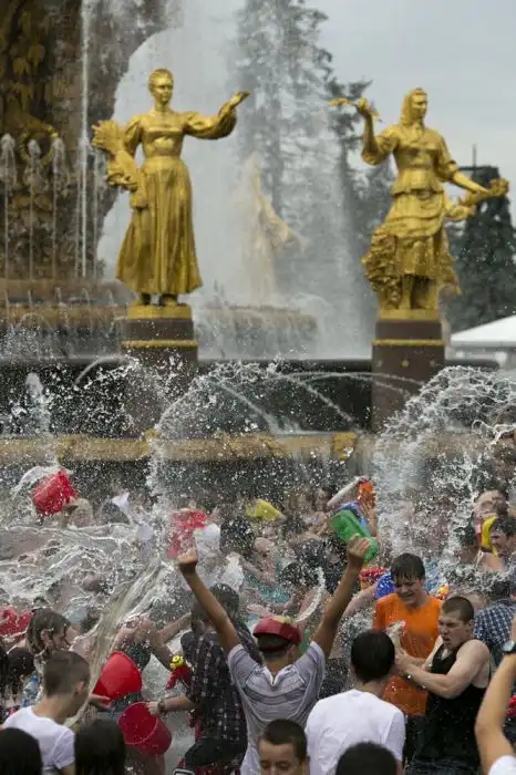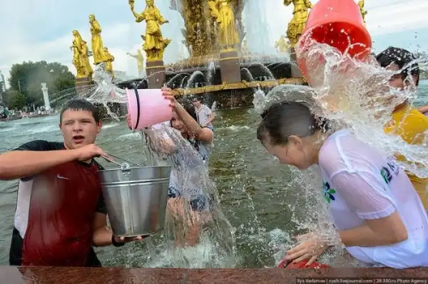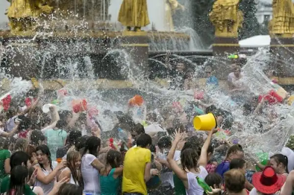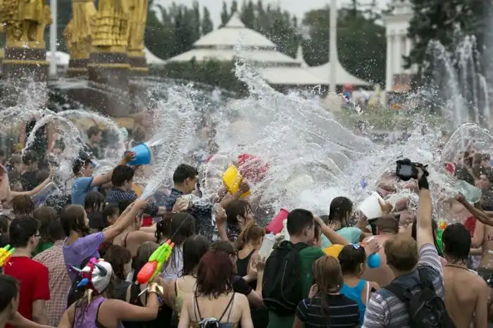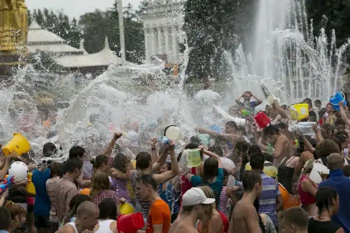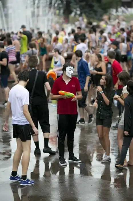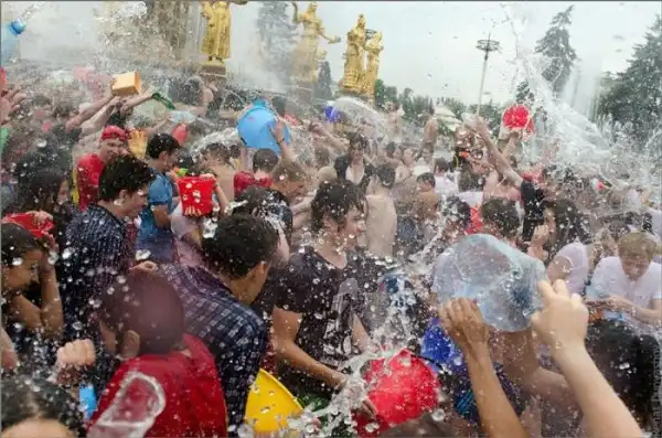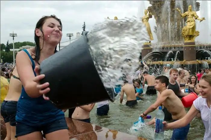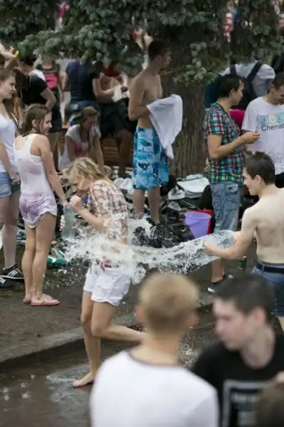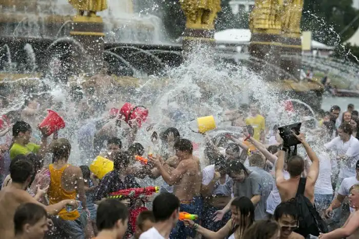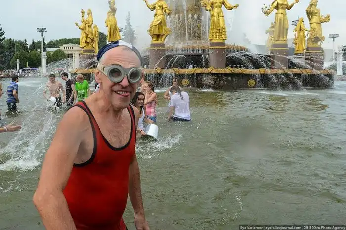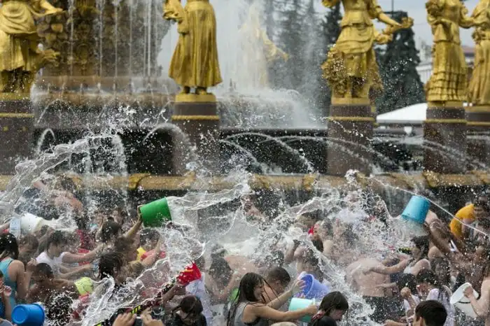 Чем еще заняться молодежи в душной и невыносимо жаркой столице? ;)Конечно же устроить традиционную водную битву на ВДНХ.