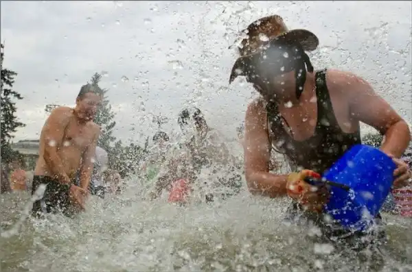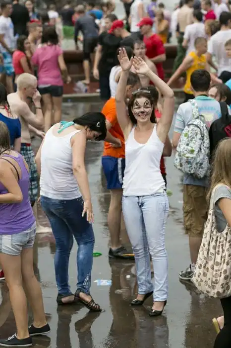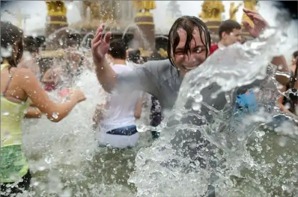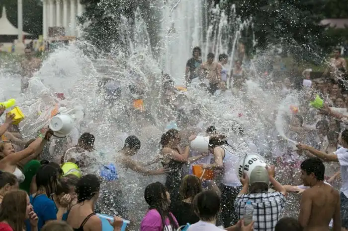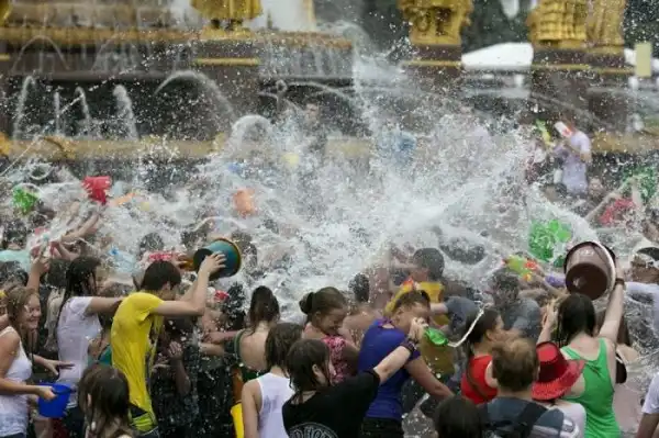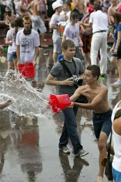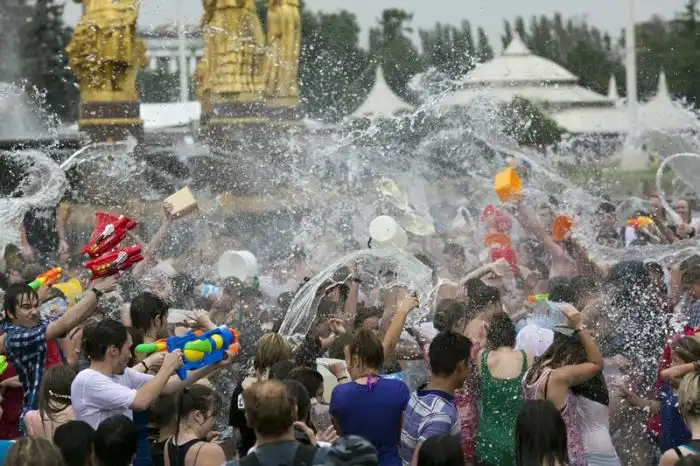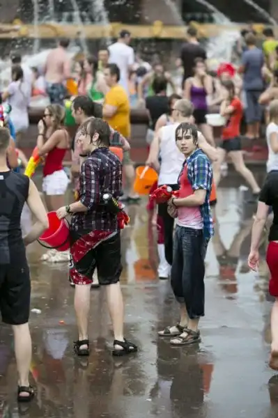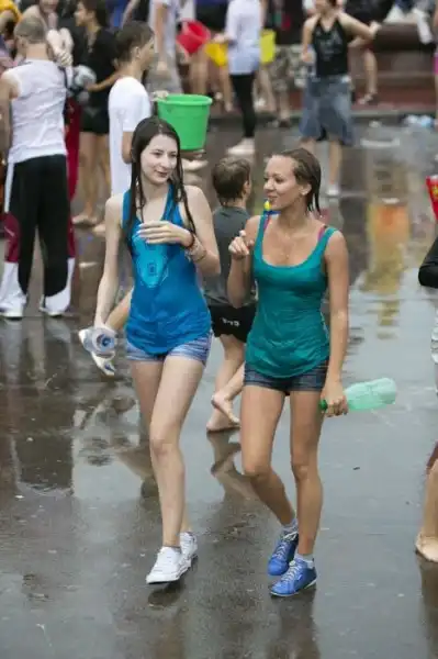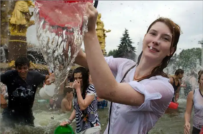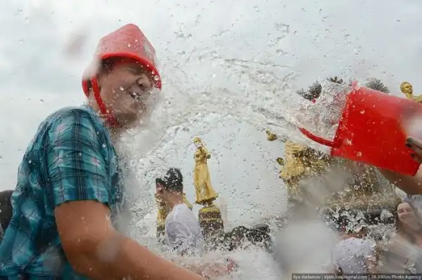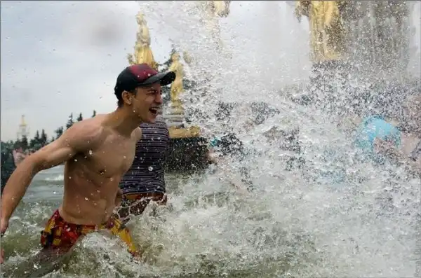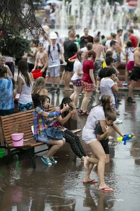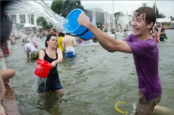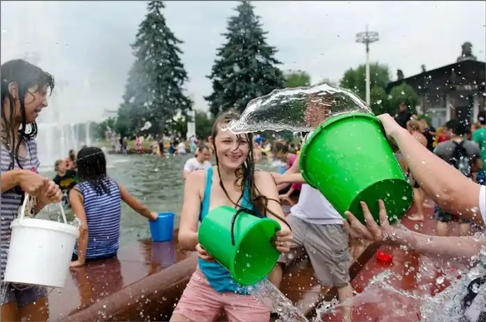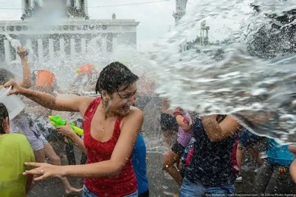 Чем еще заняться молодежи в душной и невыносимо жаркой столице? ;)Конечно же устроить традиционную водную битву на ВДНХ.