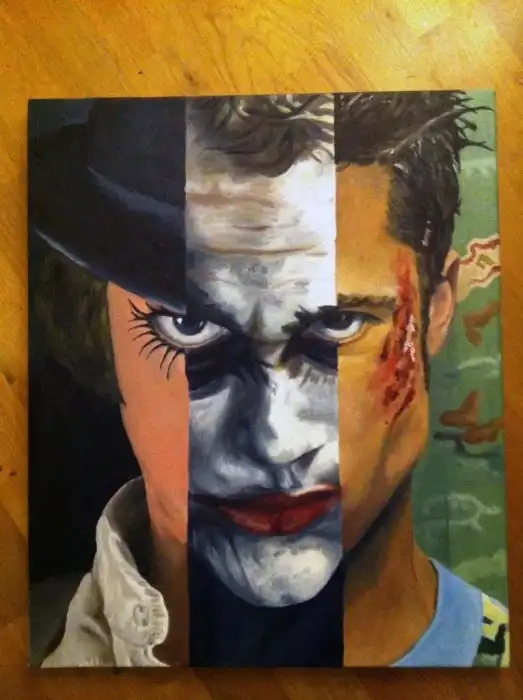 Слева Малкольм Макдауэлл "заводной апельсин", справа Брэд Питт по всей видимости "Бойцовский клуб"