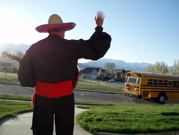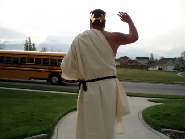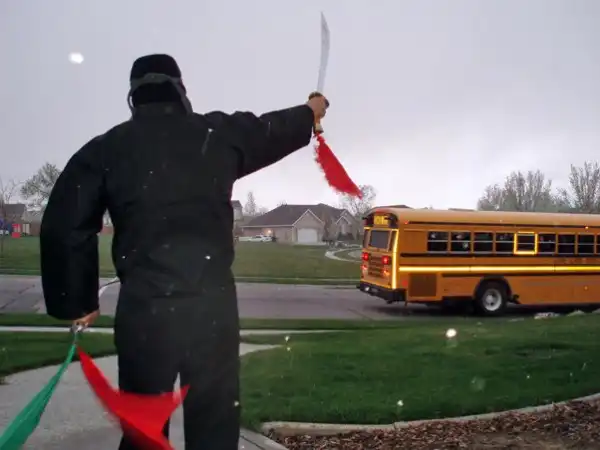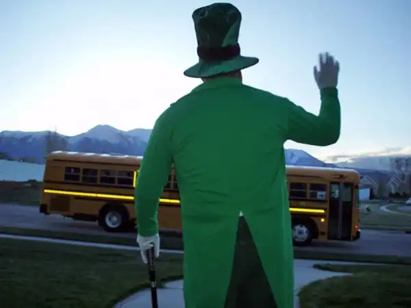 16-летний Рэйн Прайс уговаривал отца не махать вслед автобусу, отвозящему его в школу. Дэйл Прайс сделал наоборот: в течение всего учебного года он каждое утро выходил провожать автобус. Да не просто так, а всегда в новом самодельном костюме.