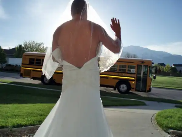 16-летний Рэйн Прайс уговаривает отца не махать вслед автобусу, отвозящему его в школу.