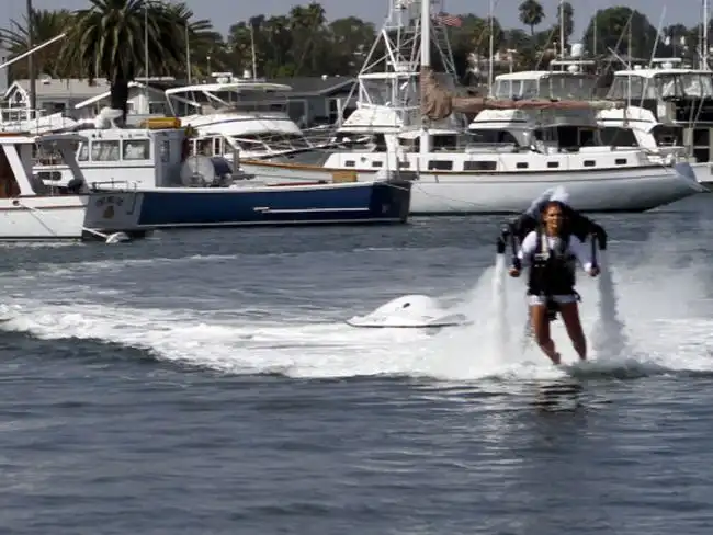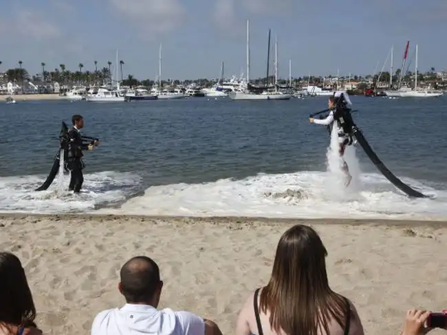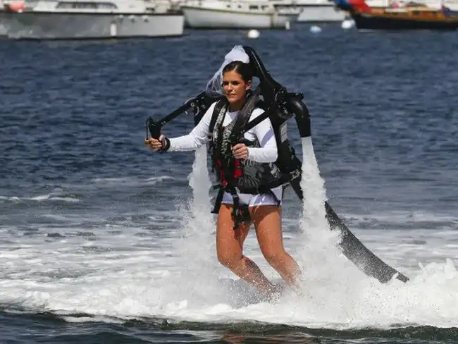 Они прибыли на церемонию бракосочетания на паре водных реактивных ранцев.
